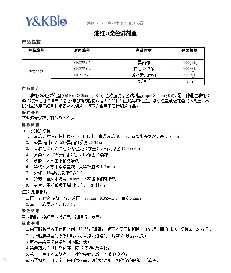 吉林油红O染色试剂盒